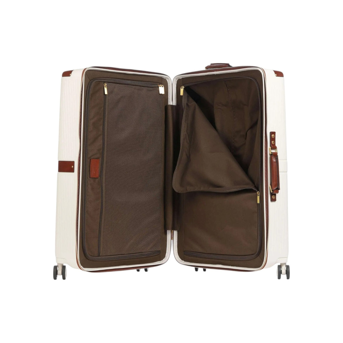 Il Trolley Piccolo firmato The Bridge, della Linea Story realizzato in pelle è caratterizzato da piedini protettivi di plastica e da chiusura frontale con zip a due vie (chiusura bloccabile), TSA a combinazione, inoltre presenta due manici in pelle e l'interno foderato in tessuto con divisorio interno.