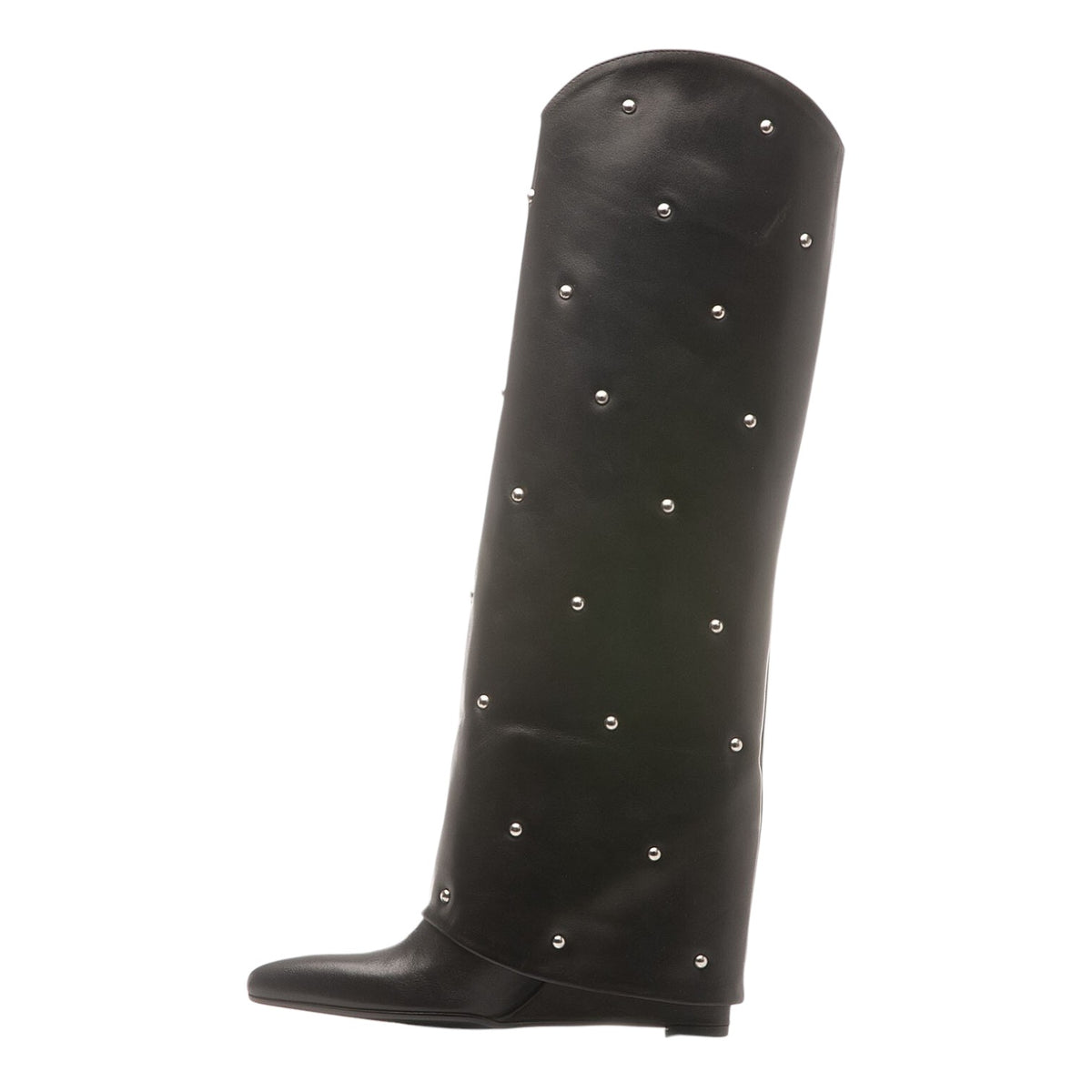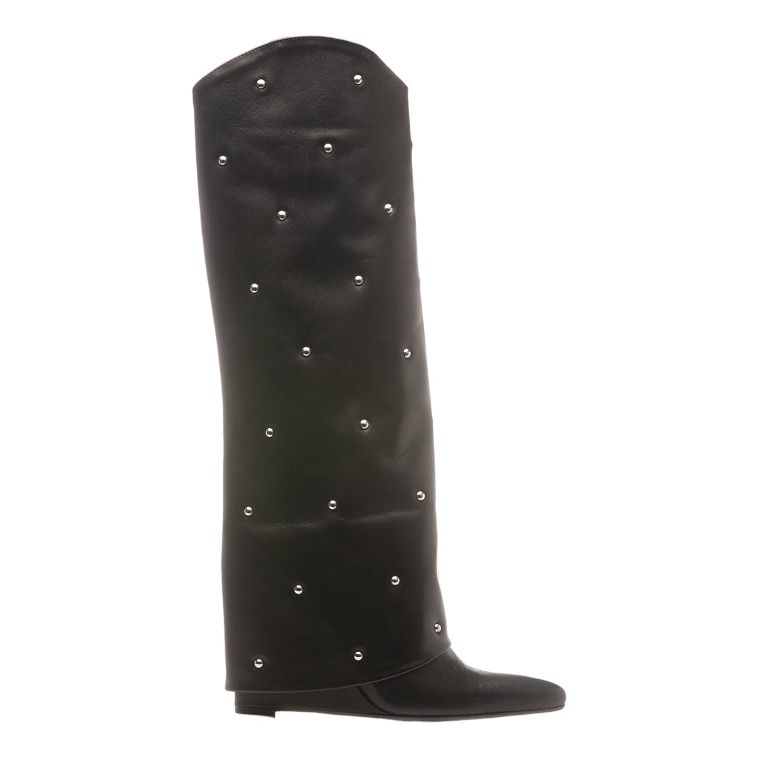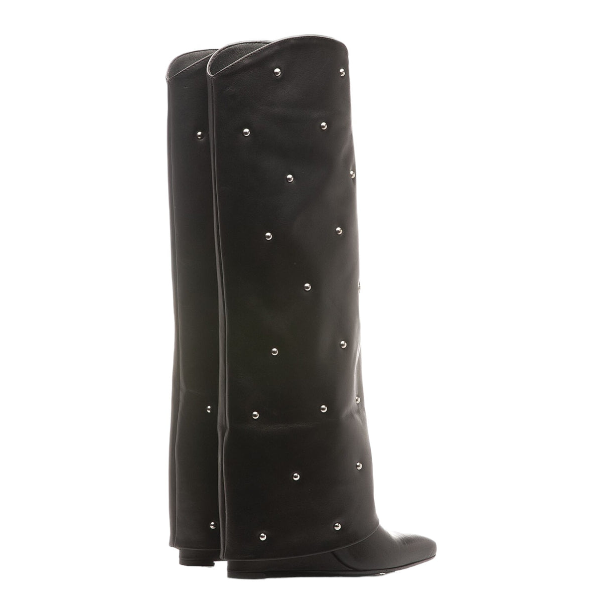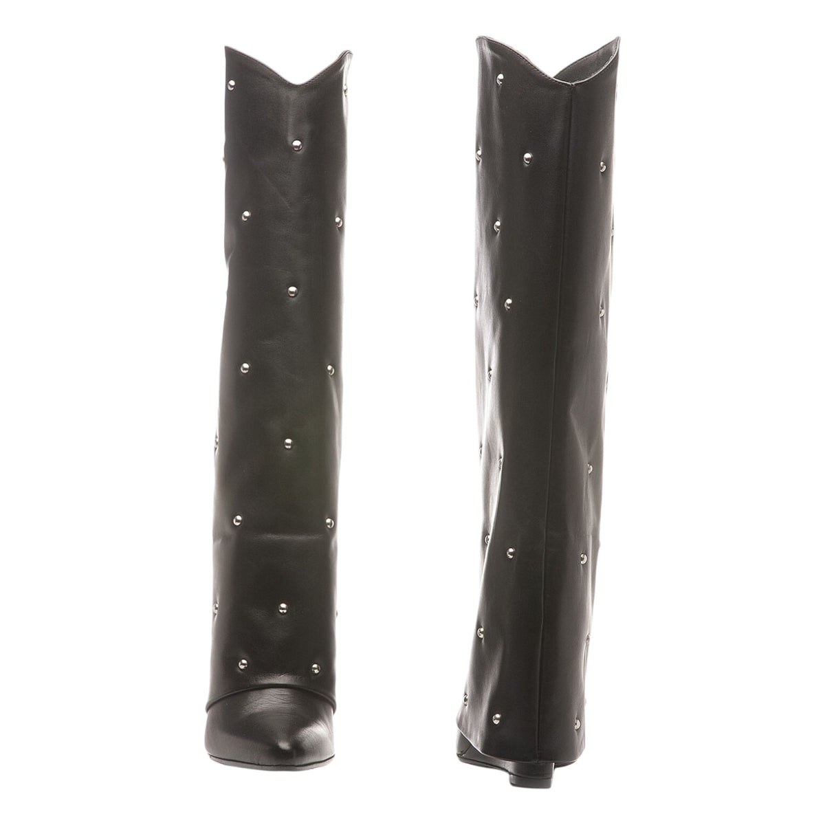 The Icona Stivale Alto Nero in Pelle con Borchie