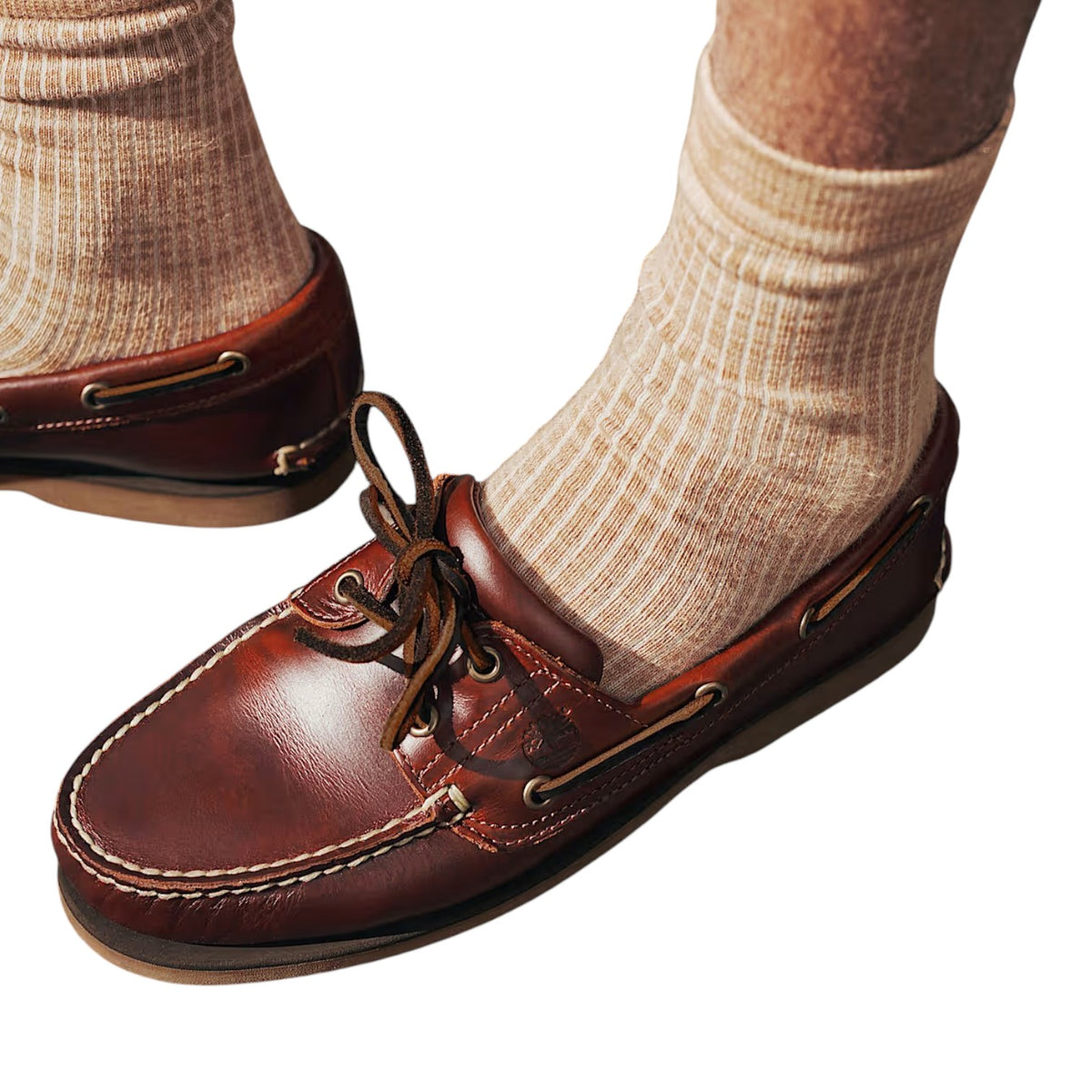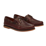 Timberland Stringata Stile Barca Uomo in Pelle Marrone con Cuciture