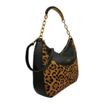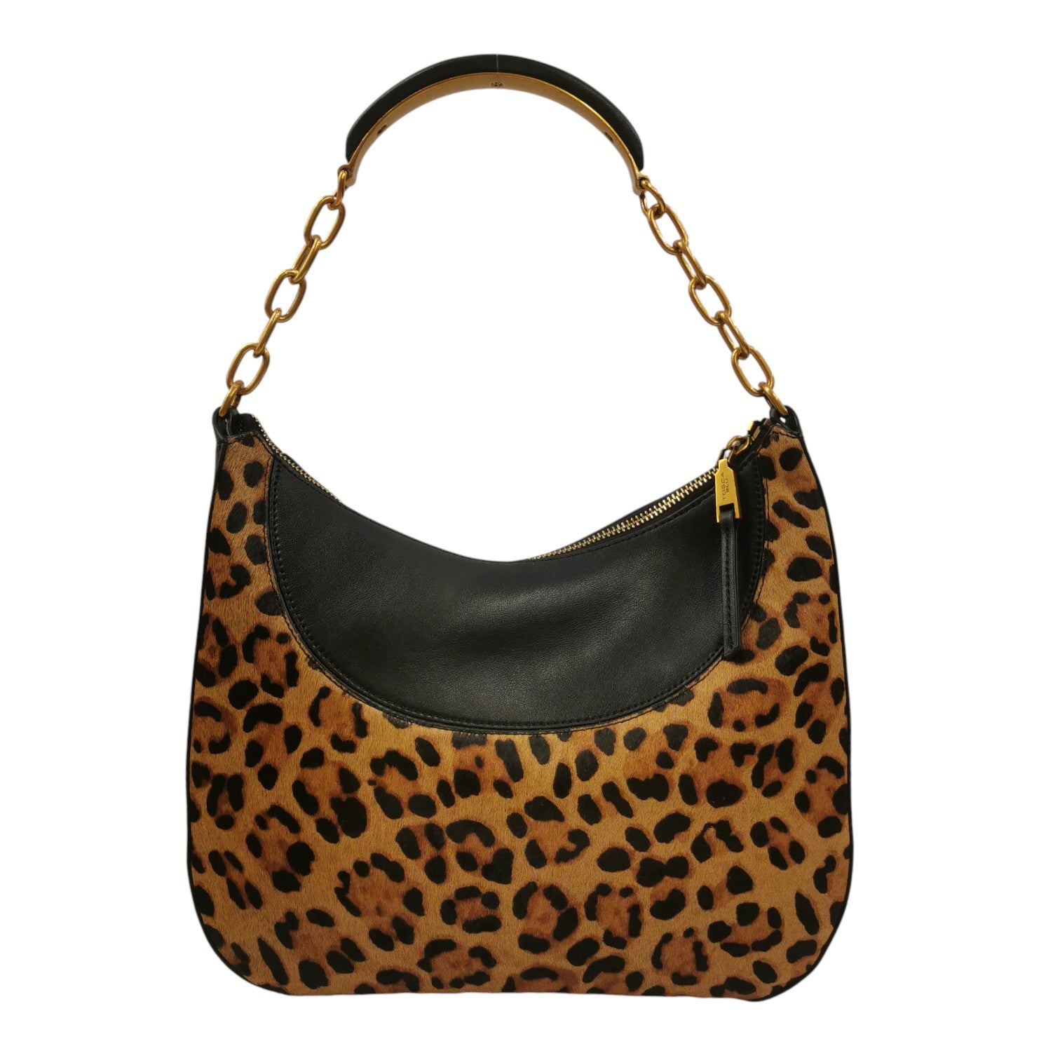 La Borsa a spalla firmata Tosca Blu, realizzata in pelle con la sua silhouette a mezzaluna, unisce due anime in un unico, irresistibile accessorio: l'eleganza classica della pelle in tonalità nera e il tocco selvaggio e di carattere della stampa animalier. La catena dorata, unita al comodo manico in pelle, aggiunge un tocco di luce e modernità. Al suo interno la borsa a spalla è dotata di uno scomparto con due taschine. Indossala per elevare un look monocromatico o per aggiungere un accento grintoso a un outfit casual.