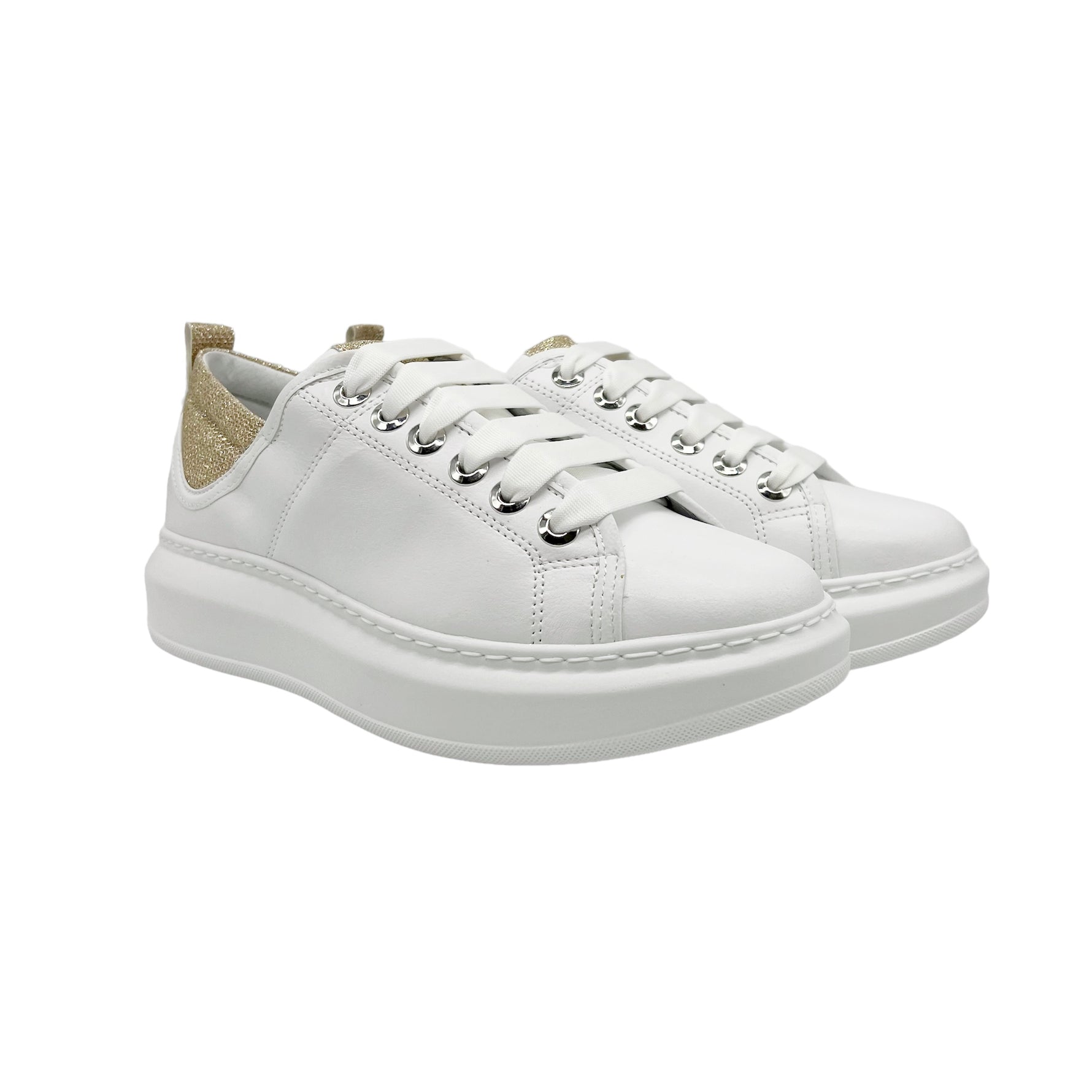 Uma Parker Sneakers bianca con tallone glitterato platino