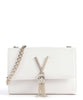La Pochette semi-rigida firmata Valentino Bags, realizzata in similpelle dalla silhouette piccola dal gusto elegante e chic, dotata di tracollina in catena color oro.