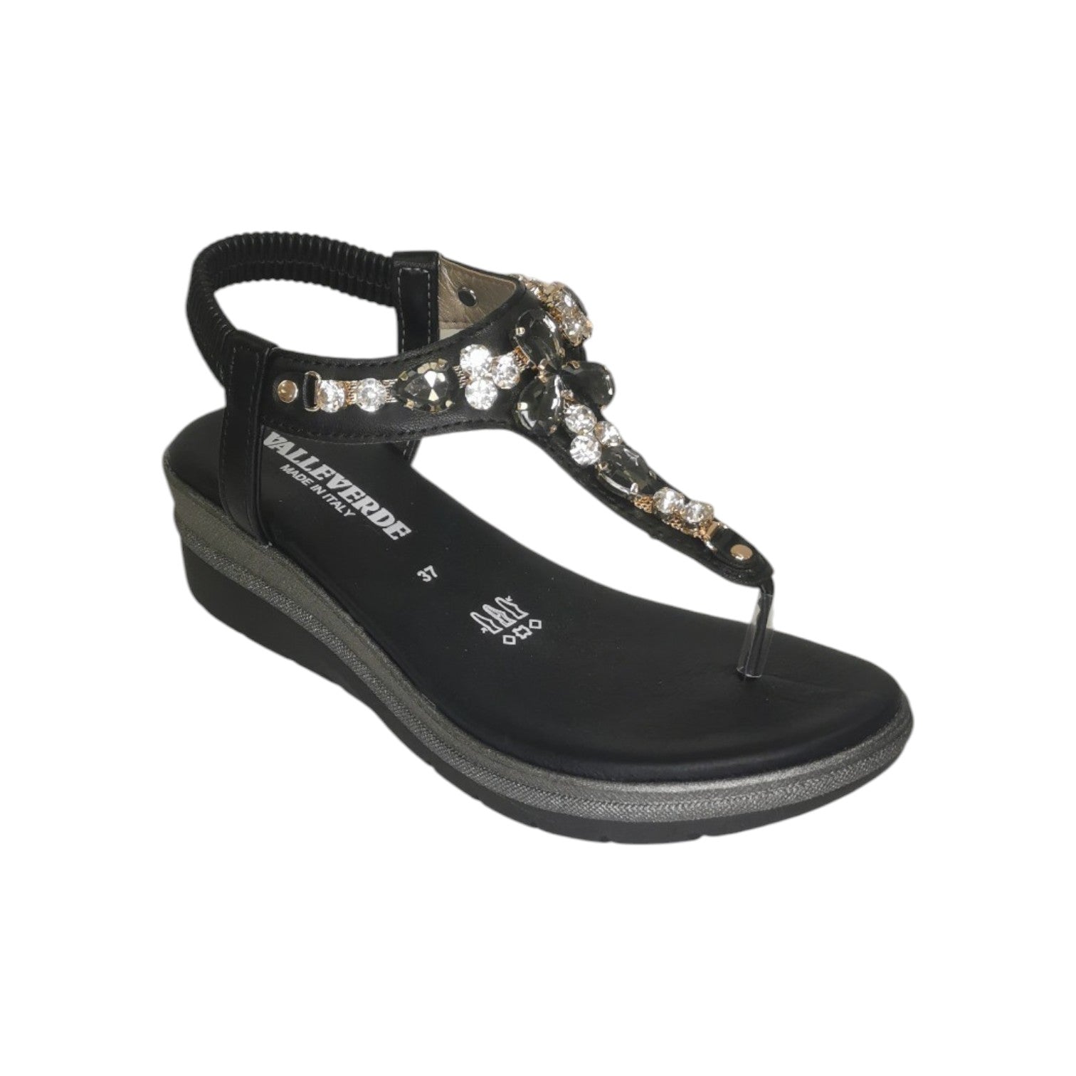 Valleverde Infradito Nero Gioiello con Zeppa da Donna