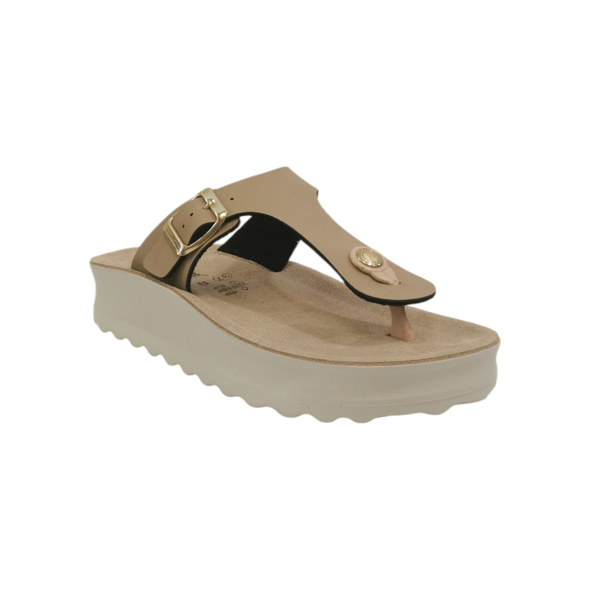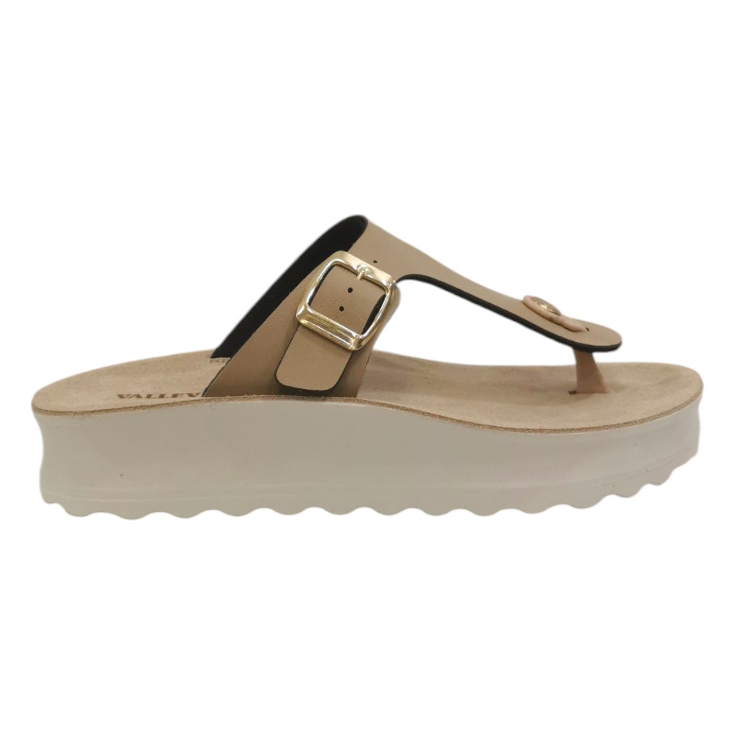 L'Infradito firmato Valleverde, realizzato in ecopelle qui proposto nella variante sabbia presenta una fibbia regolabile sul collo del piede per una calzata perfetta. Confortevole e pratico dotato di suola in gomma alta 3cm è un sandalo che si adatta a tutti gli stili di outfit.