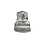 Il Sandalo firmato Valleverde, realizzato in pelle facile da indossare grazie alla chiusura con fibbia sul tallone e alla fascia elastica che garantiscono un'ottima adattabilità ad ogni tipo di piede, presenta un decorativo accessorio argento, e una comoda zeppa di 5cm.