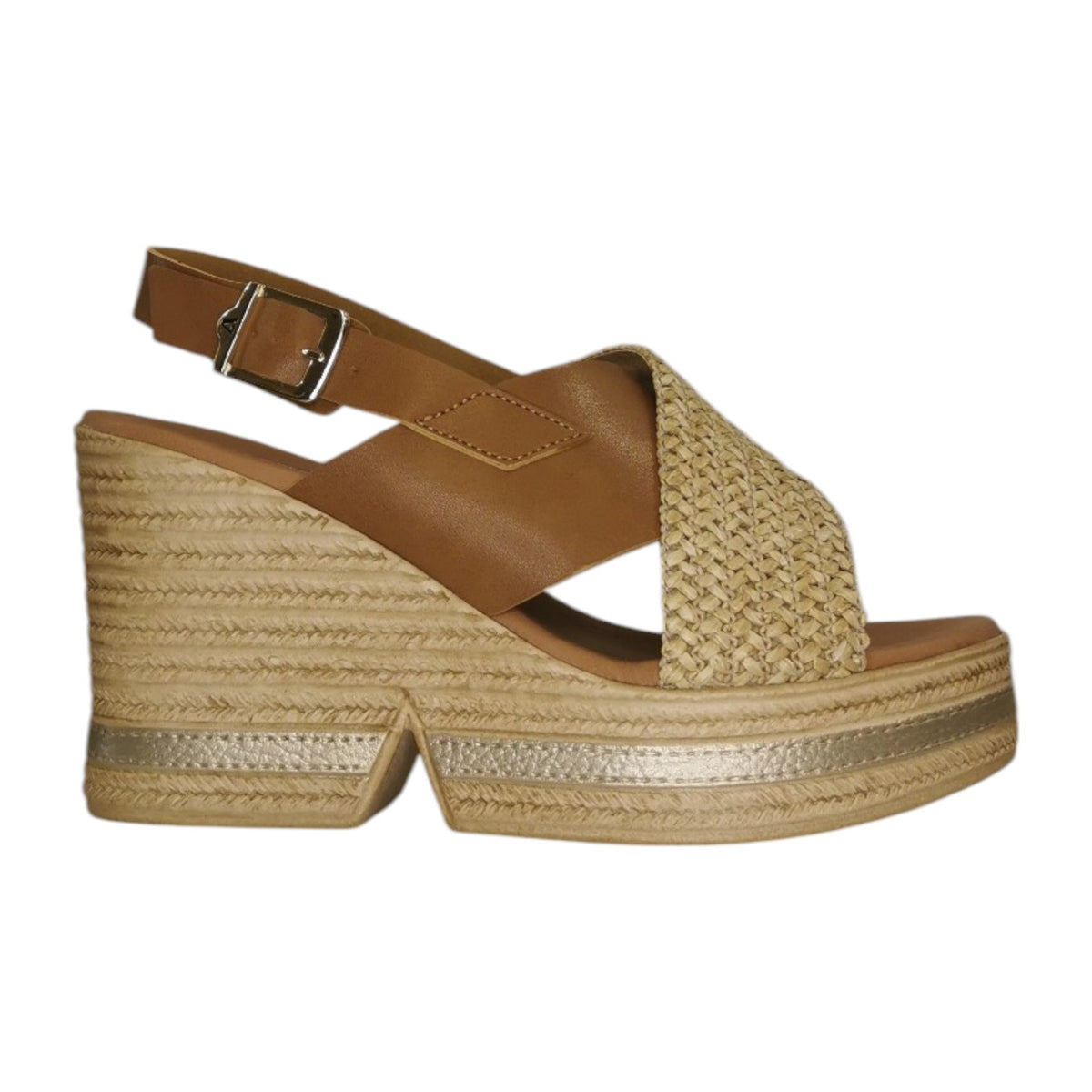 Valleverde Sandalo Sabbia in Raffia con Zeppa da Donna