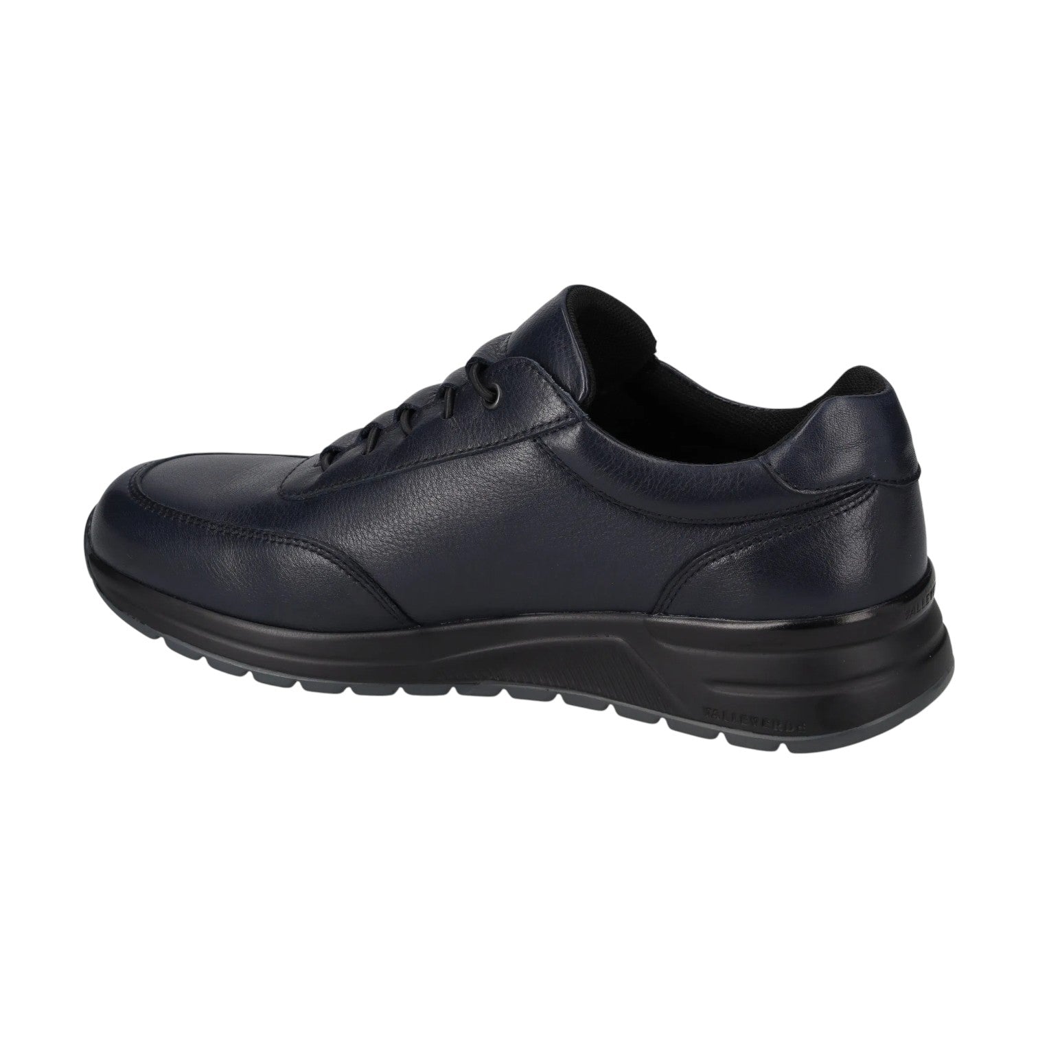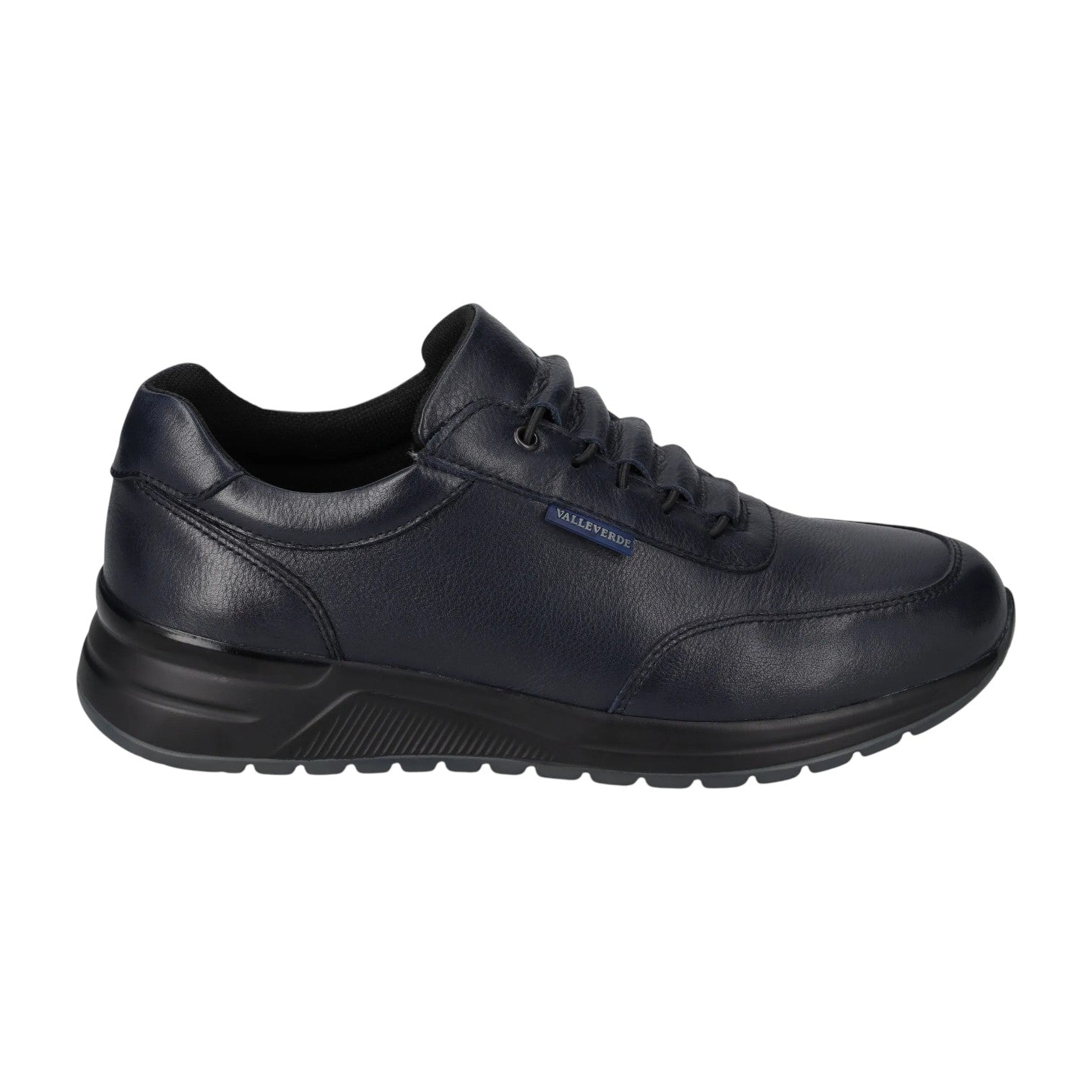 Lo Slip on firmato Valleverde, realizzato in pelle nella variante blu è caratterizzato da una linguetta piccola laterale con il logo e da interno foderato in tessuto con plantare in pelle estraibile e suola in gomma.