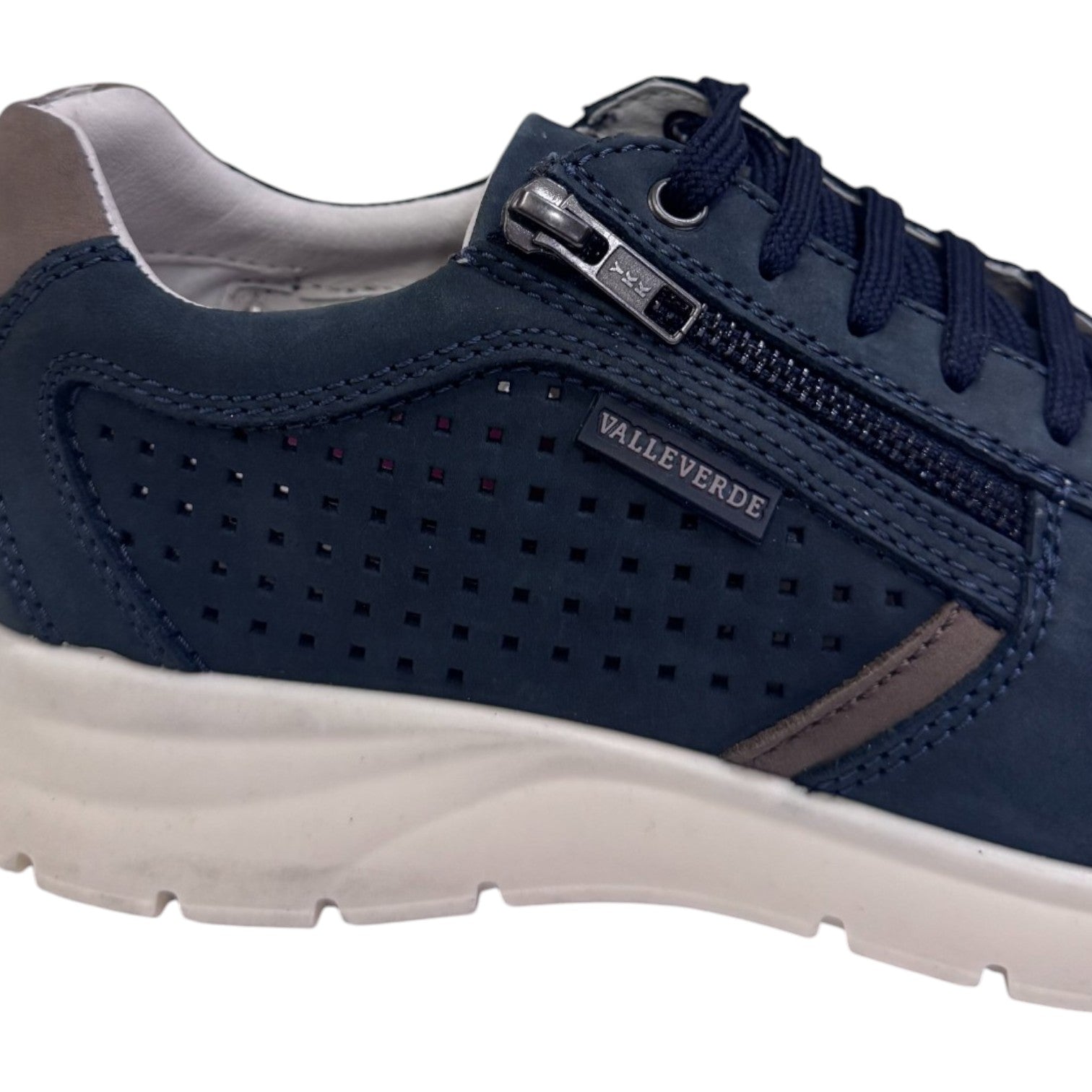 Valleverde Sneakers Blu in Nabuck Traforata con Lacci e Cerniera da Uomo