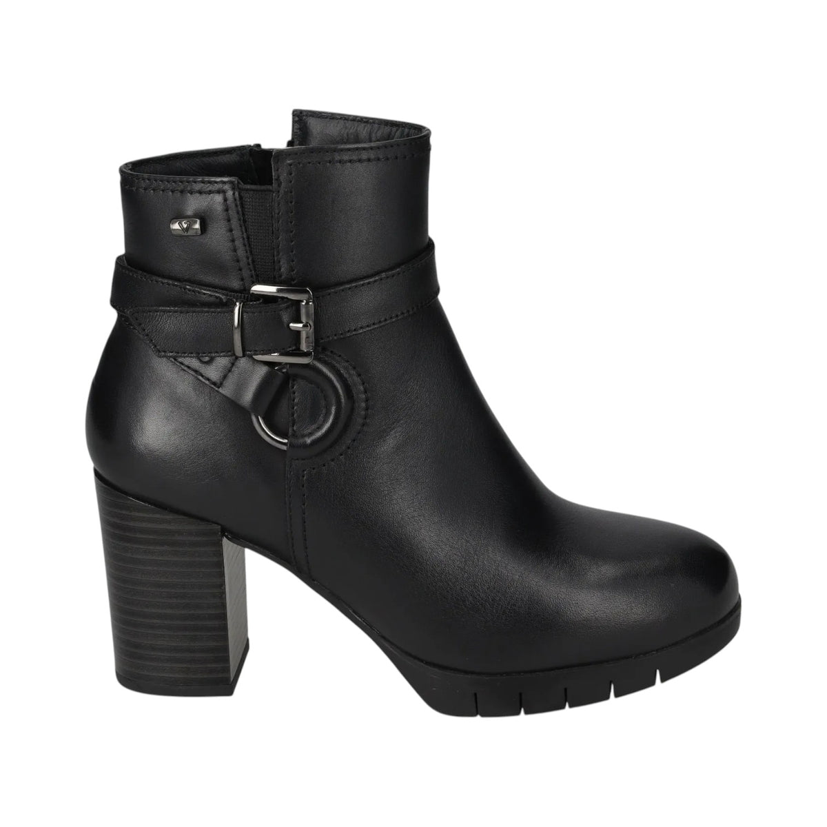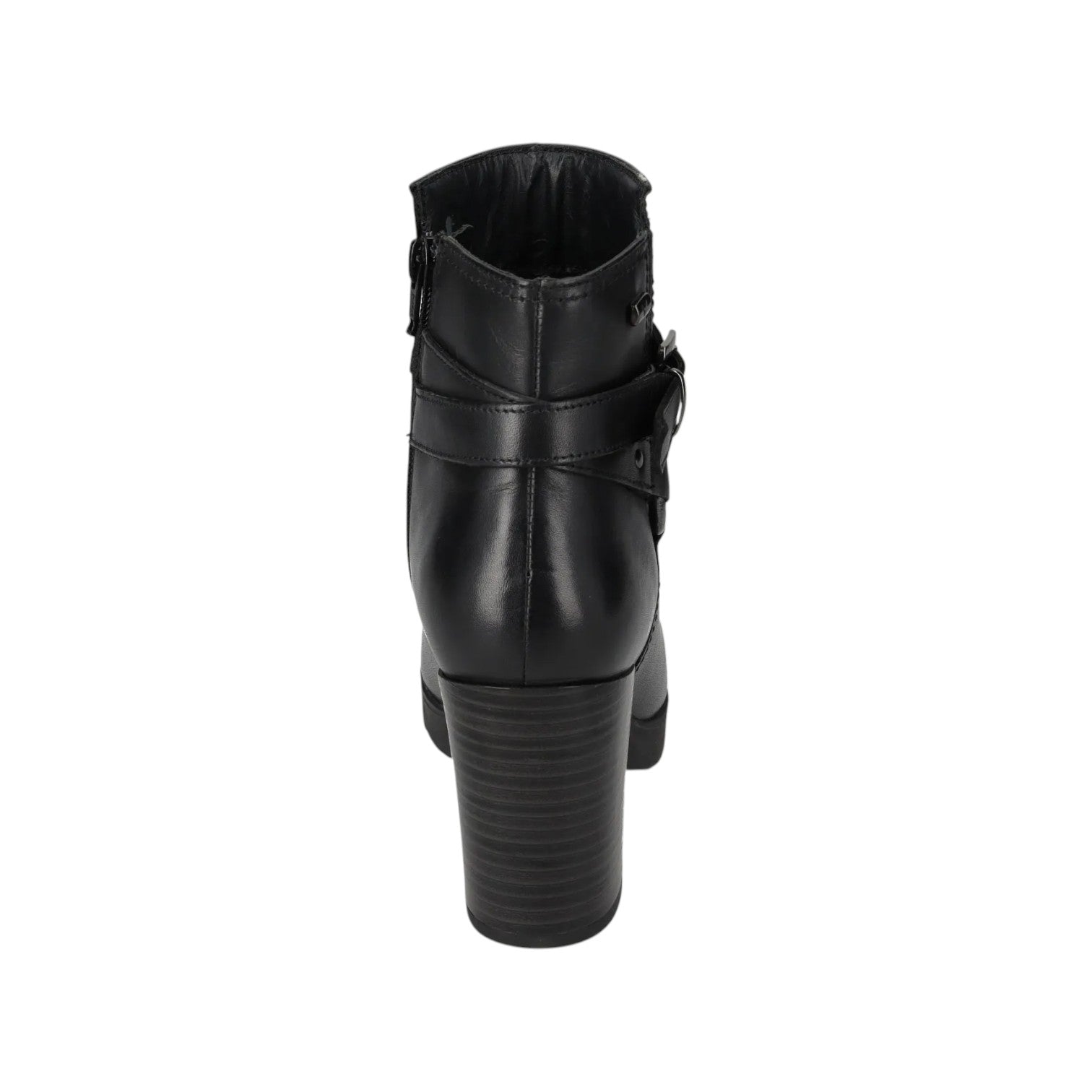 Valleverde Tronchetto Donna in Pelle Nera con Accessorio e Tacco Largo Alto 80mm