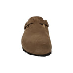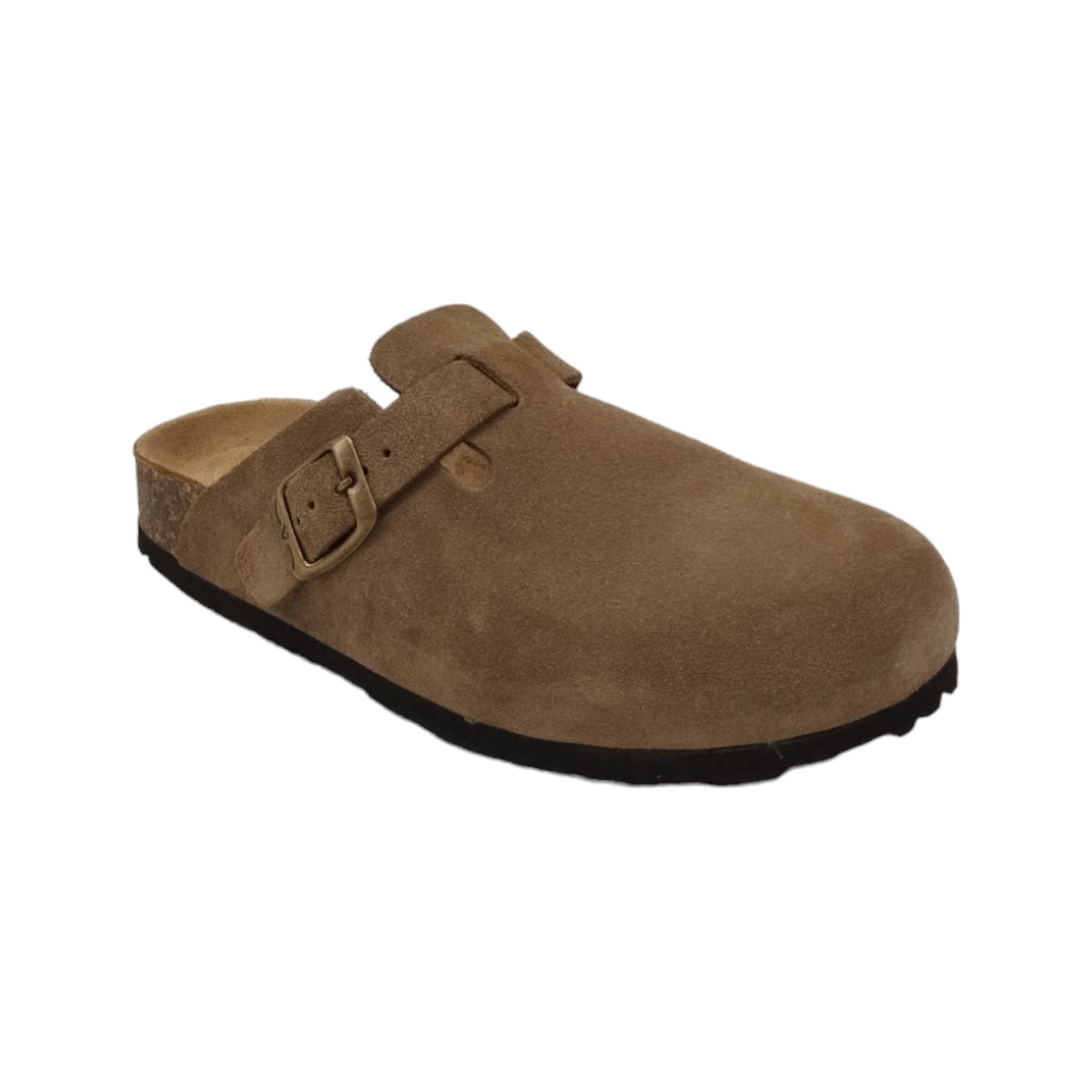 Il Sabot firmato Valleverde, realizzato in camoscio è caratterizzato da una chiusura con fibbia regolabile per un maggiore stabilità del piede. Sottopiede anatomico rivestito in pelle per assicurare traspirabilità e igiene con suola in sughero.