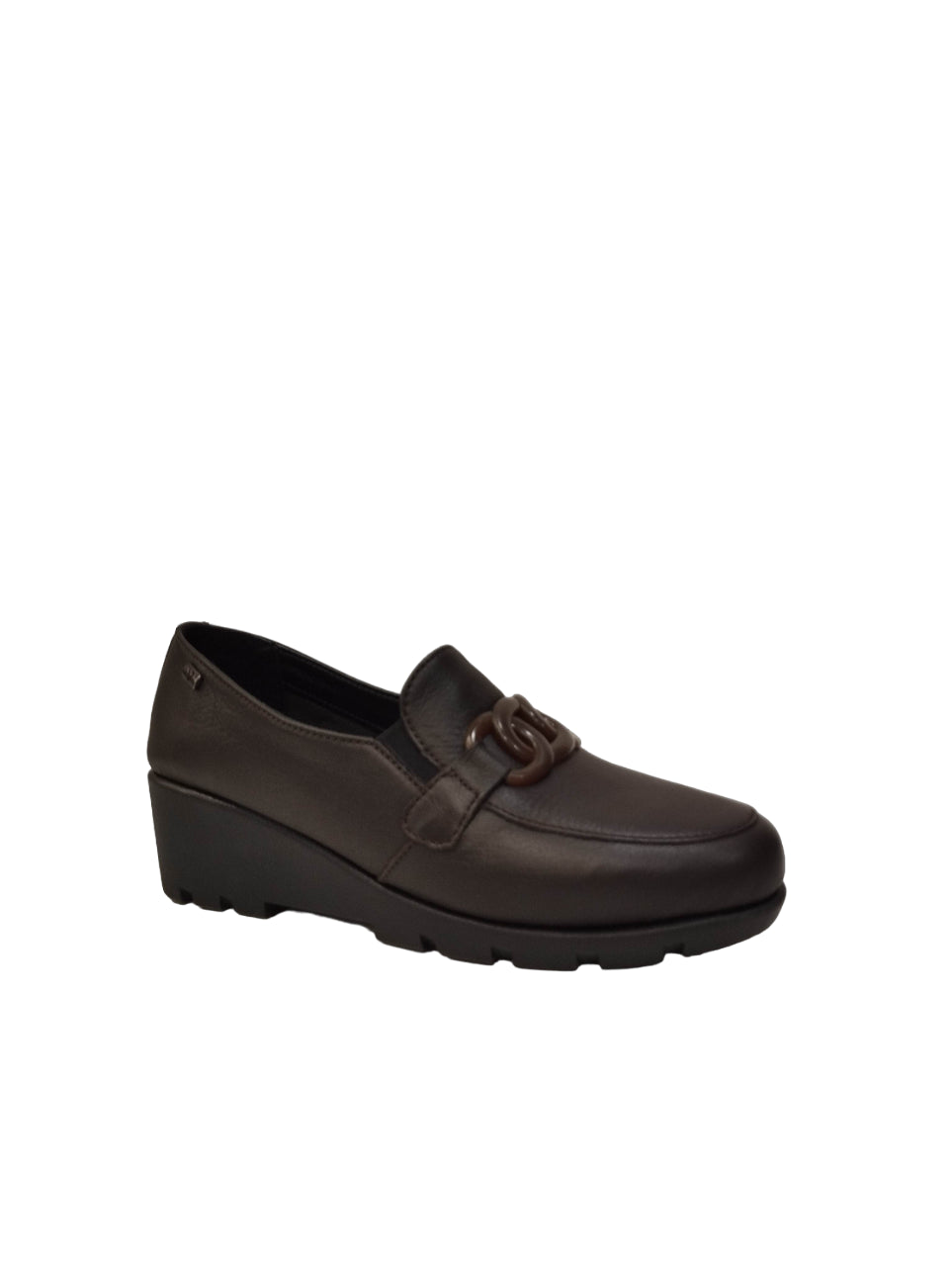 Il Mocassino firmato Valleverde, realizzato in pelle è caratterizzato da un dettaglio a catena sulla parte frontale e degli elastici in tessuto laterali per facilitare la calzata. Modello dotato di comoda zeppa alta 5cm, sarà la scelta ideale per un look casual o formale.