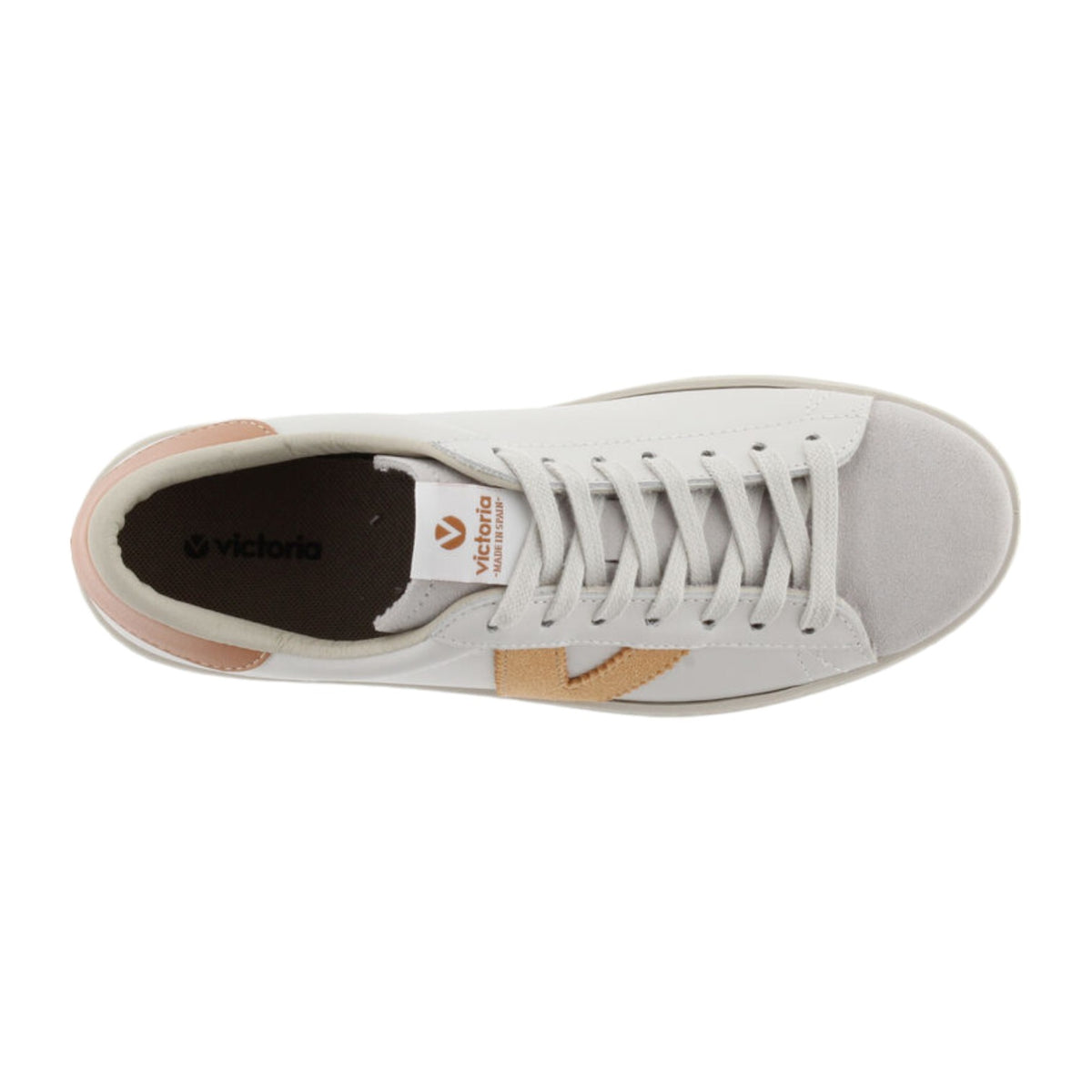 La Sneakers firmata Victoria, realizzata in ecopelle è caratterizzata da un tocco di colore con 'V' di victoria sul lato e dettaglio sul tallone, inoltre presenta una chiusura con lacci tono su tono e tomaia con punta scamosciata.