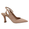 La Chanelle firmata Victoria Chris, realizzata in morbida pelle scamosciata presenta un design a punta affusolata, chiusura con cinturino alla caviglia regolabile. Completano la calzatura un tacco alto 8cm.