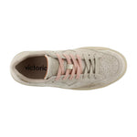 La Sneakers firmata Victoria, realizzata in camoscio con inserti metallizzati tono su tono. Chiusura con lacci bicolore: alcuni tono su tono e altri rosa, punta traforata per favorire la traspirazione. Suola in TPR traslucido color caramello.