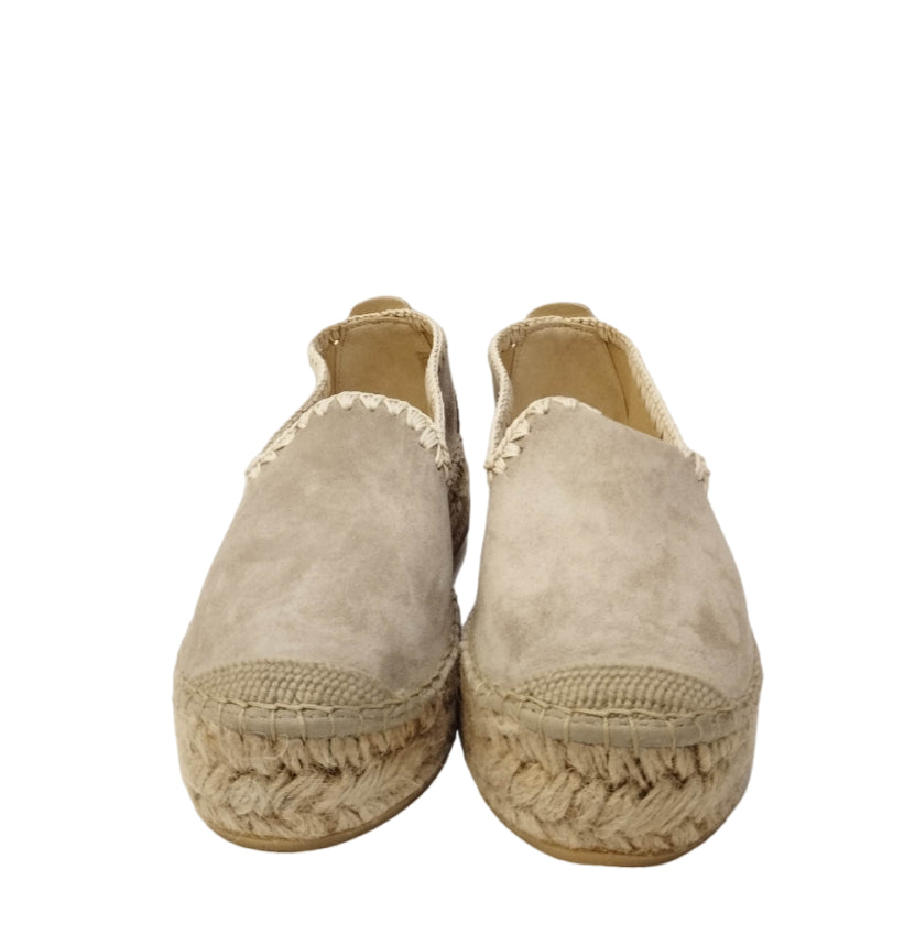 Espadrillas firmata Vidorreta in canvas, realizzata con tomaia con dettagli lamè. Un modello reso confortevole grazie al plateau in juta naturale intrecciato 3cm è perfetto per le vacanze o le giornate al mare.